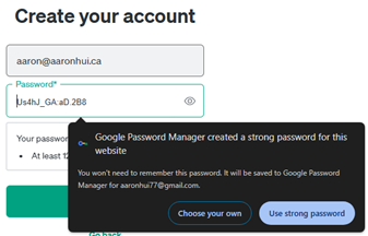 If ecosystem options are unavailable, then you’ll need to create the account with a username and password. If the username needs to be an email, use the email that you regularly use and have access to because it is often used for 2FA (Two factor authentication).